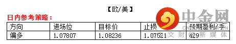 相关产品: 欧/美与黄金;预期波动:利多