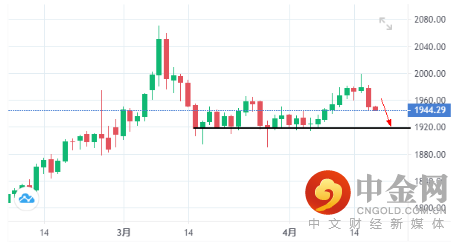 上一个交易日(4/19)黄金收跌,开盘价为1978.02,中间过程一度至1981.99附近后往下,一度还至1944.18,最后收于1950.10。于今日(4/20)开盘价为1950.10,早盘时间下跌至1946左右。