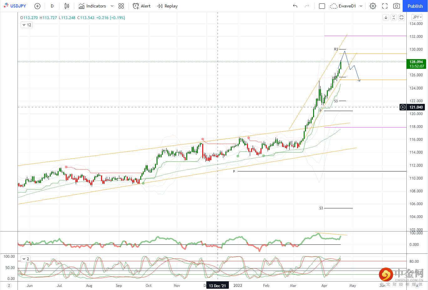 上方止损,可能进一步走向 2002 年 5 月高点 129.15