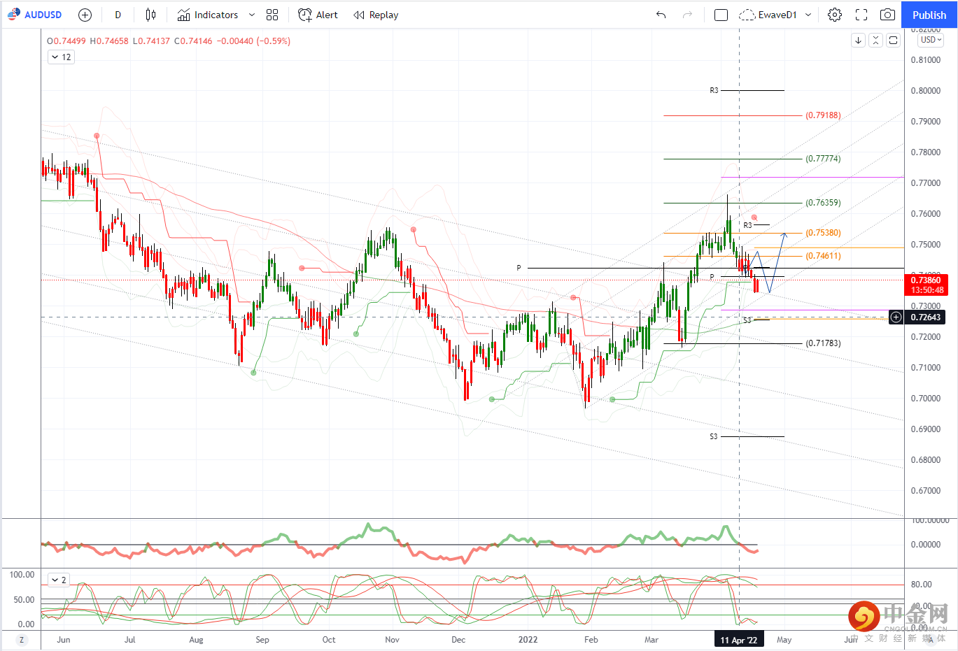 澳元/美元阻力位于@ 10 日均线@ 0.7429,突破将缓解压力