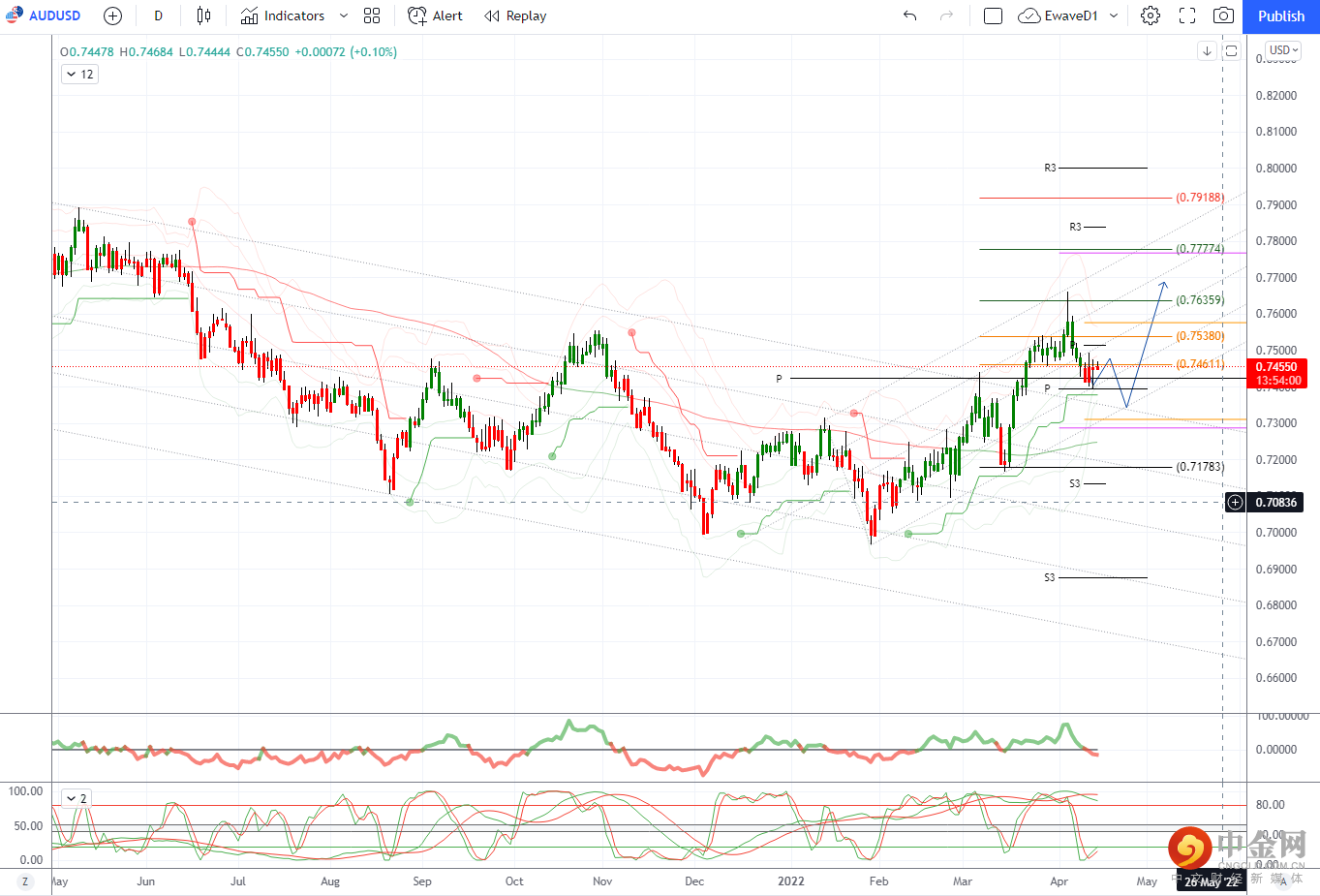 买盘指向 0.7440,支撑位在昨天的低点 0.7392