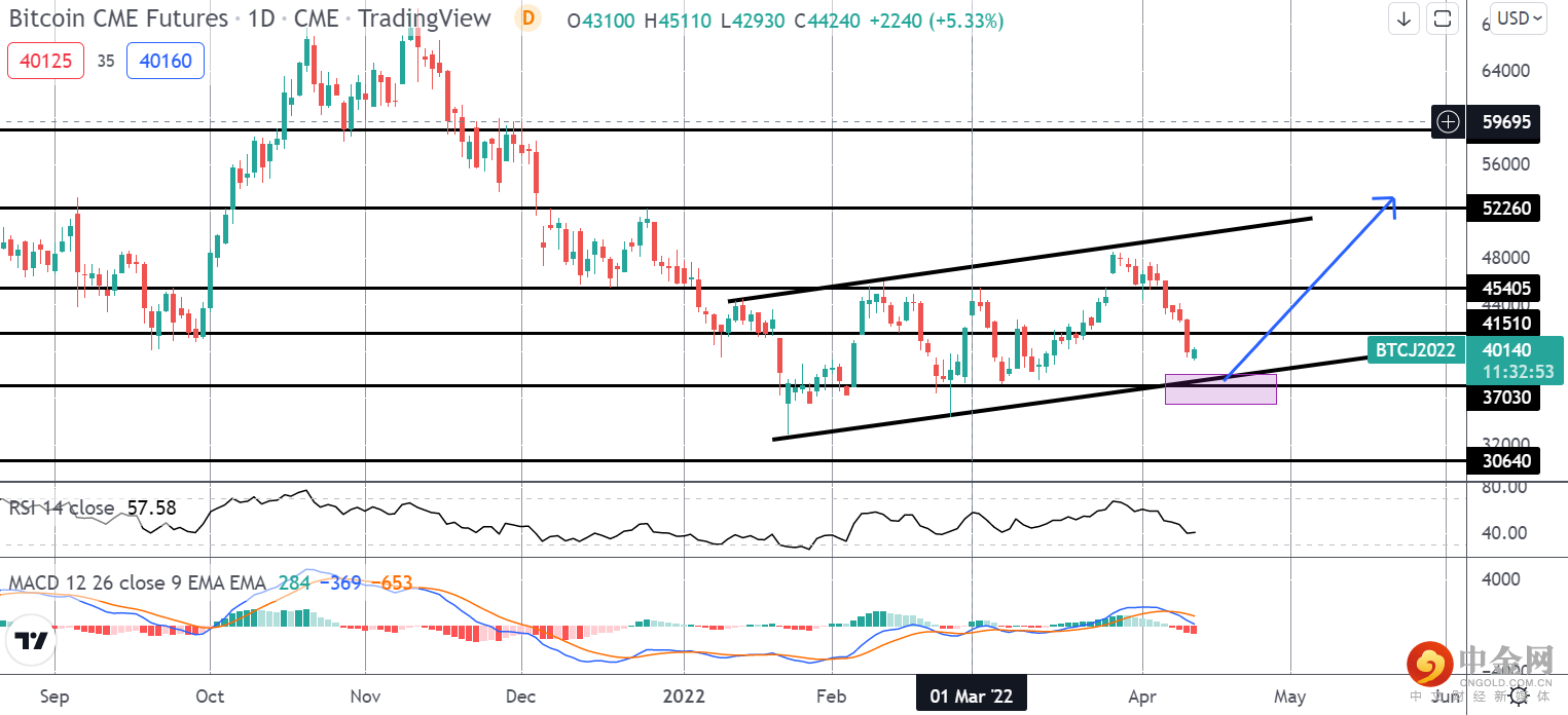 过去两周风险偏好的回落对加密资产造成了沉重打击。 BTC 已从近期高点 4800 点附近反转,随着 MACD 和 RSI 均走低,突破了两个关键支撑位。 BTC 现在正在接近上升通道低点和 37030 支撑位的主要支撑区域。该区域还标志着对称模式与当前牛市通道中的先前修正的完成。考虑到这一点,如果我们看到价格走势确认,多头可以考虑从该区域反转交易,目标是回升至 41510 和 45405,通道顶部和 52260 是主要目标。