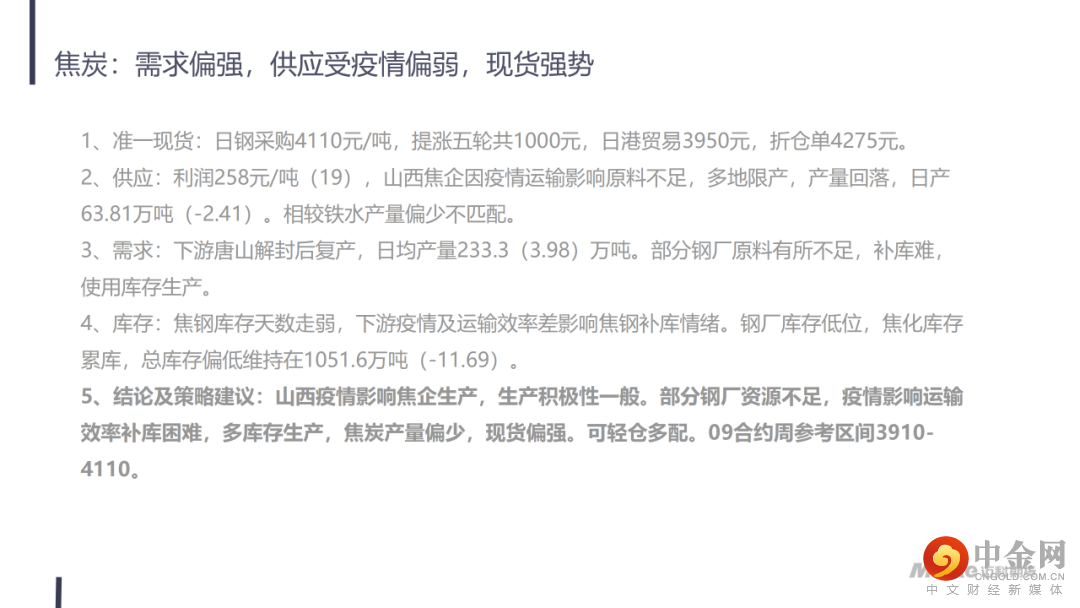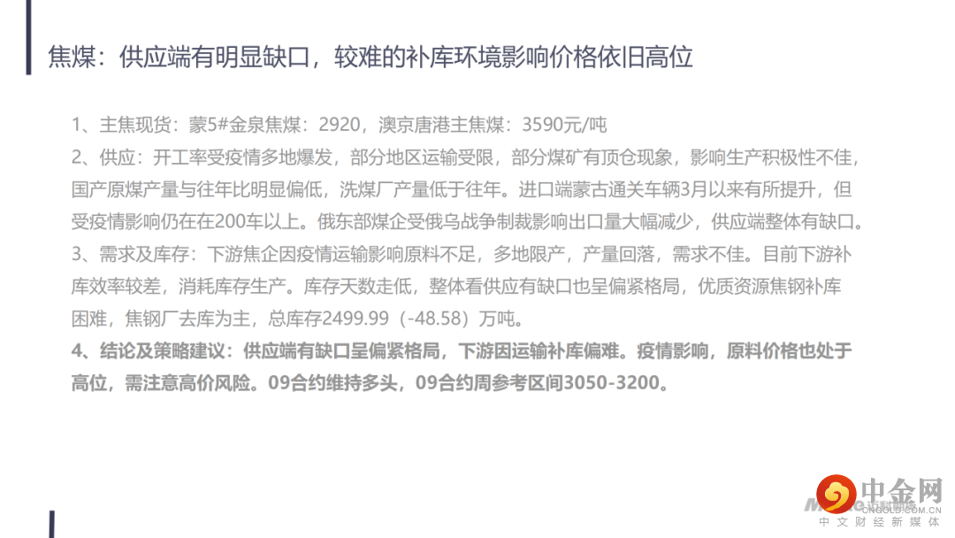 迈科双焦周报-疫情影响焦企生产及运输补库,现货进入偏紧格局 | 2022.04.18