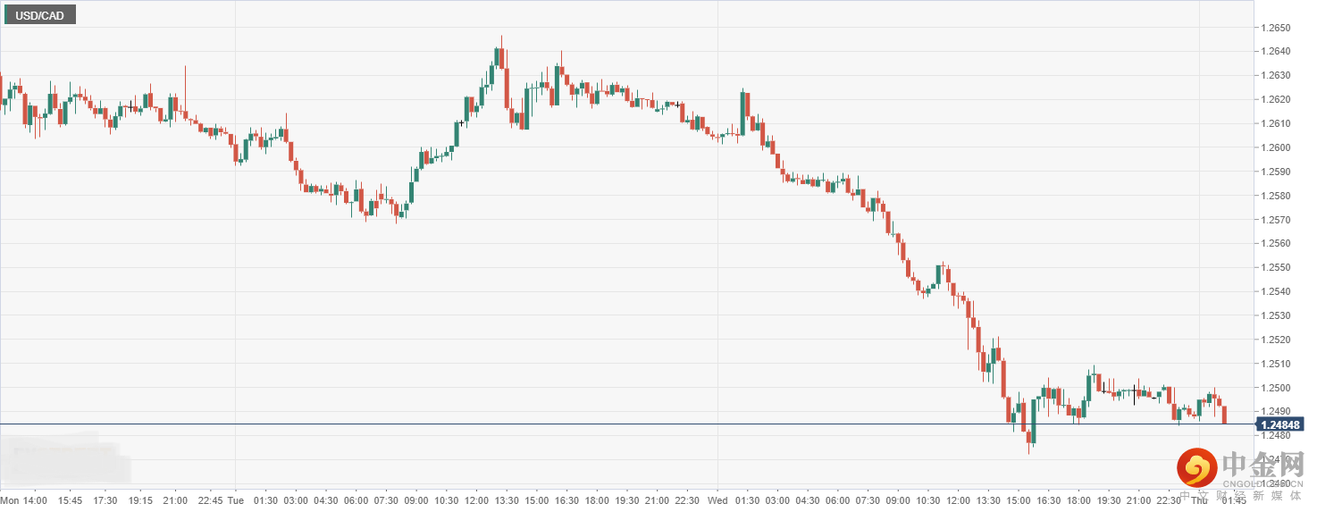 美元兑加元周三收盘大幅回落后,今日开盘跌至1.2484附近,而美元指数短线收盘震荡下跌0.66%,今日开盘盘整在100.45附近,因美国成屋销受数据疲软,伴随加拿大通胀上升大幅推高加息预期,使得加元获得上行空间。