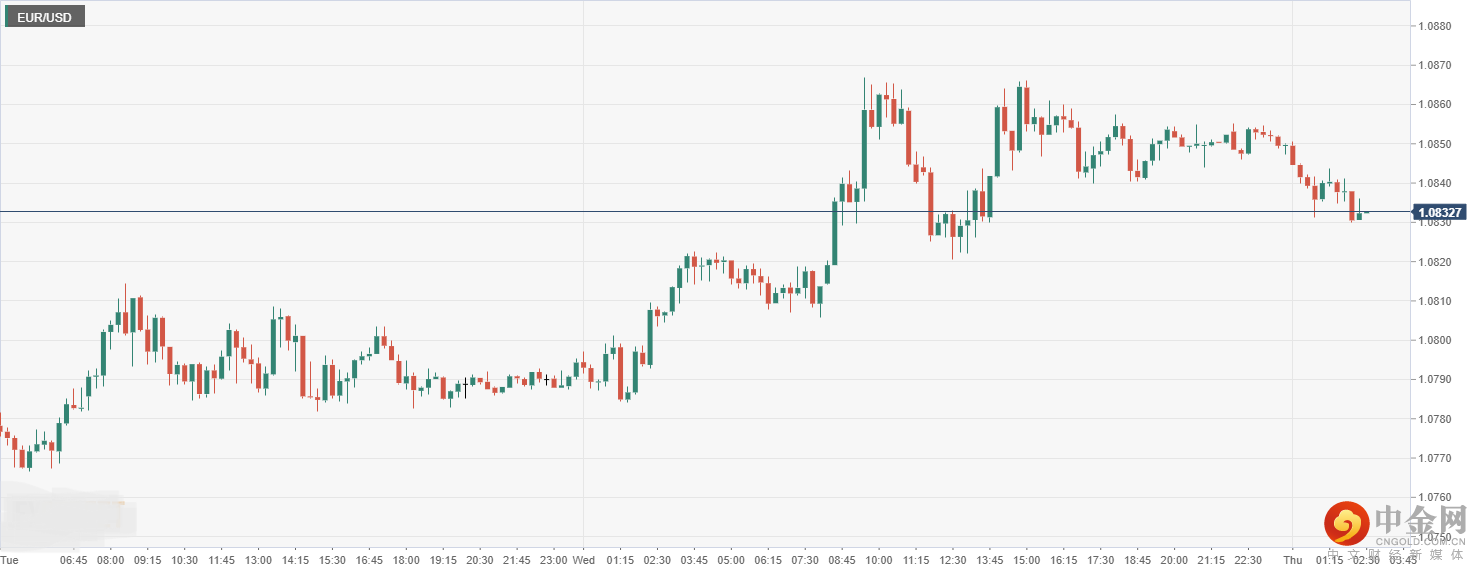 欧元兑美元周三收盘些幅回升后,今日开盘涨0.59%至1.0832,因德国央行行长表示欧央有可能提前在7月首次加息,使得欧元短在线行支撑提振。