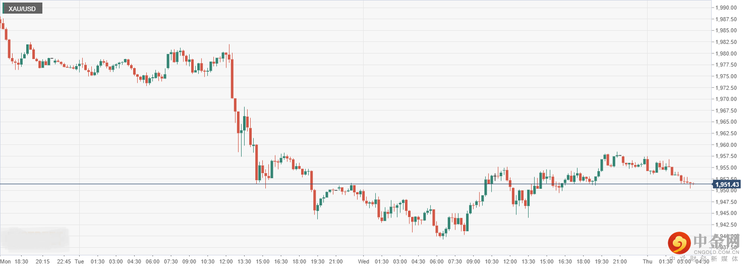 黄金兑美元周三收盘小幅回升后,今日开盘涨至1951.43附近,因美联储褐皮书及成屋销售数据疲软,使得金价上行提振。