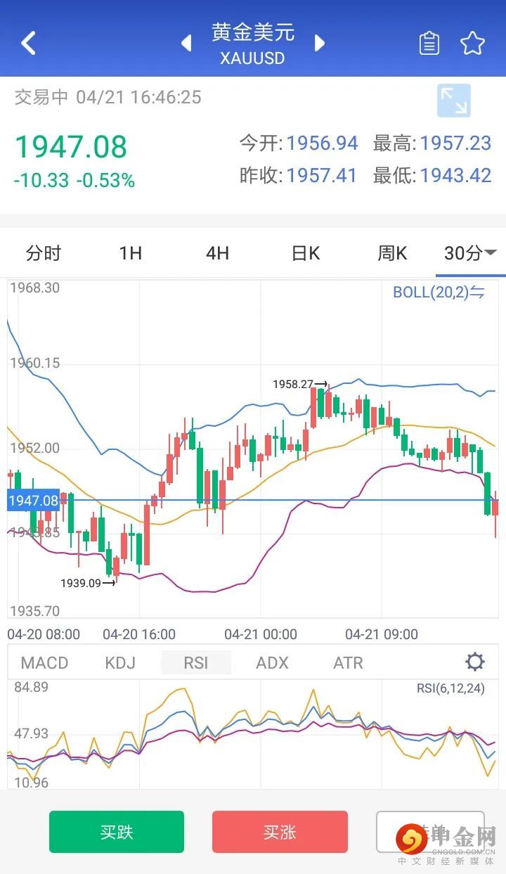 美指跳水,黄金反弹挑战1960