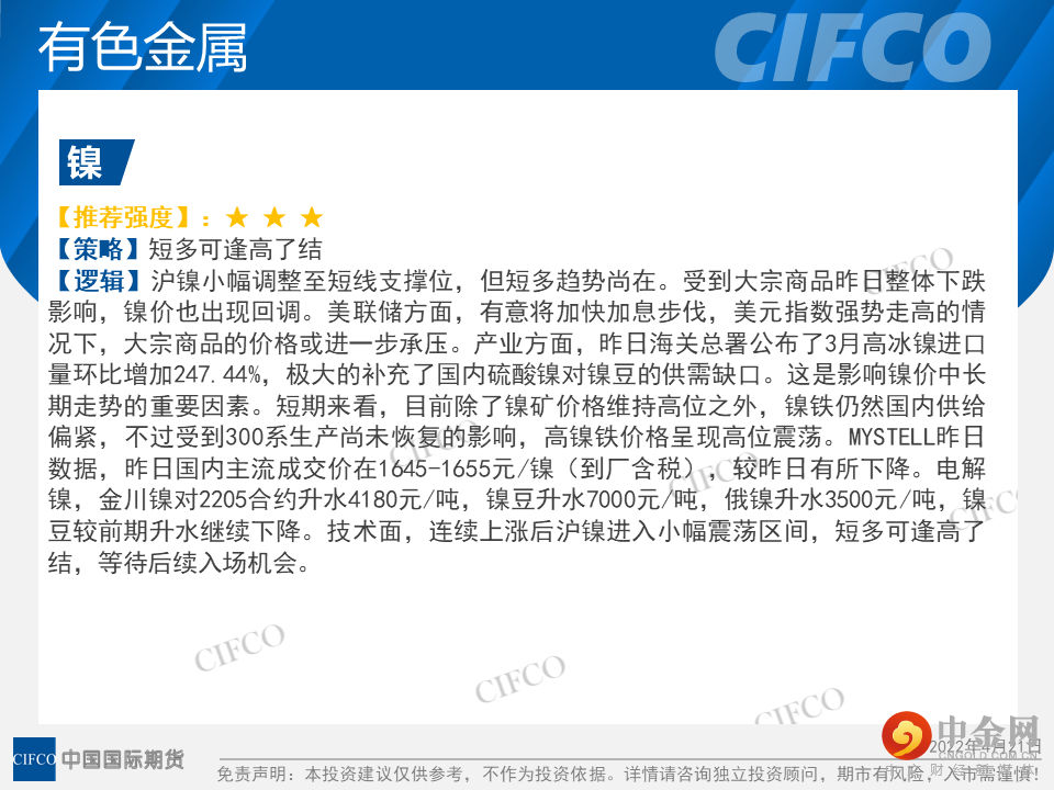 中期早知道 | 有色冲高回落 农产品震荡上涨
