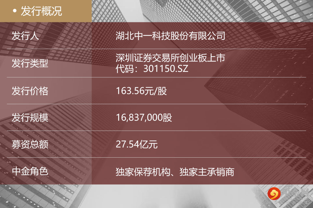 4月21日,湖北中一科技股份有限公司(“中一科技”或“公司”,301150.SZ)正式在深交所创业板上市,发行规模27.54亿元。中金公司担任中一科技本次发行的独家保荐机构、独家主承销商。