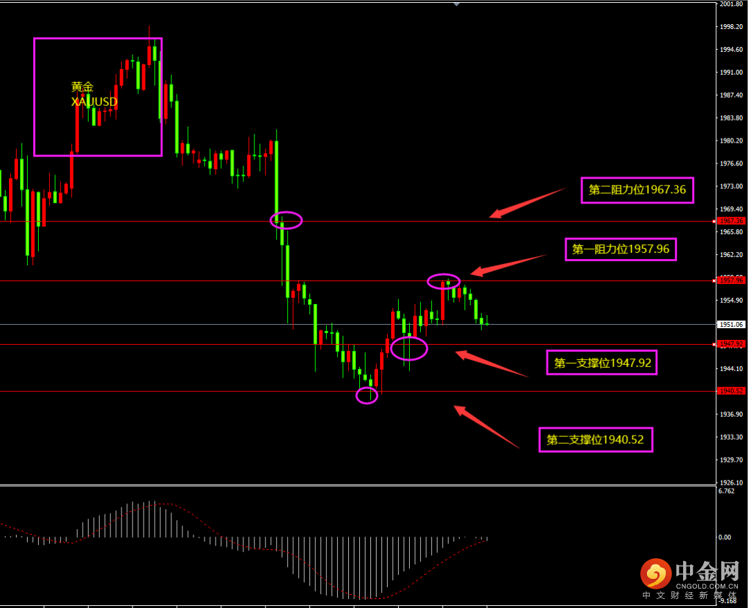 第一、二支撑位附近轻仓看多,如有大阴线跌破第二支撑位则转为观望。