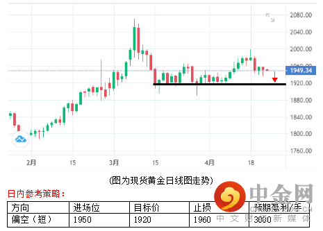 日线走势观察,两次试图突破2000美元的关口,后续都会回到1920支撑区积蓄动能。区间短线可以先注意下落的机会。