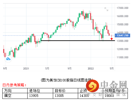 周四纳指期货大幅下跌,最高从14281.5点,最低来到13668.625点,收13715.875点