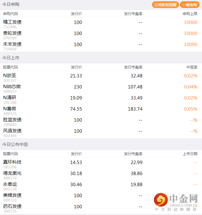 温馨提示|4月22日新股、新债提醒