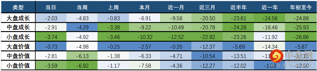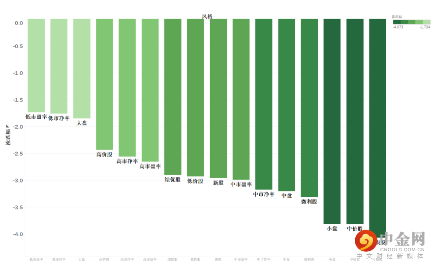申万风格基本与上一日类似,各风格均出现不同程度的下跌;低市盈率、低市净率风格的跌幅也超1.5%;亏损股、中价股、小盘跌幅均超3.5%,各风格再次“全军覆没”。