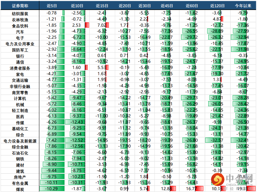 通过对各行业的各周期涨跌幅的观察,我们可以找到近期(近5日、近10日)涨幅较好的行业,这些行业是短期内的热门行业,如果你想追热点,可以在这些“动量效应”较足的行业内寻找机会,但也需要结合估值、基本面、政策面等因素判断其趋势的可持续性。