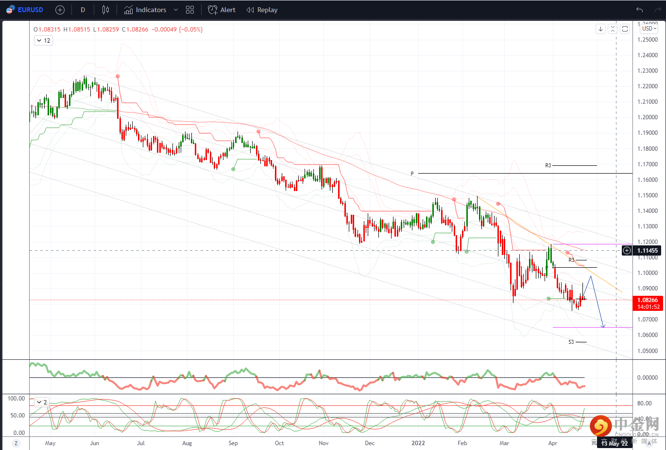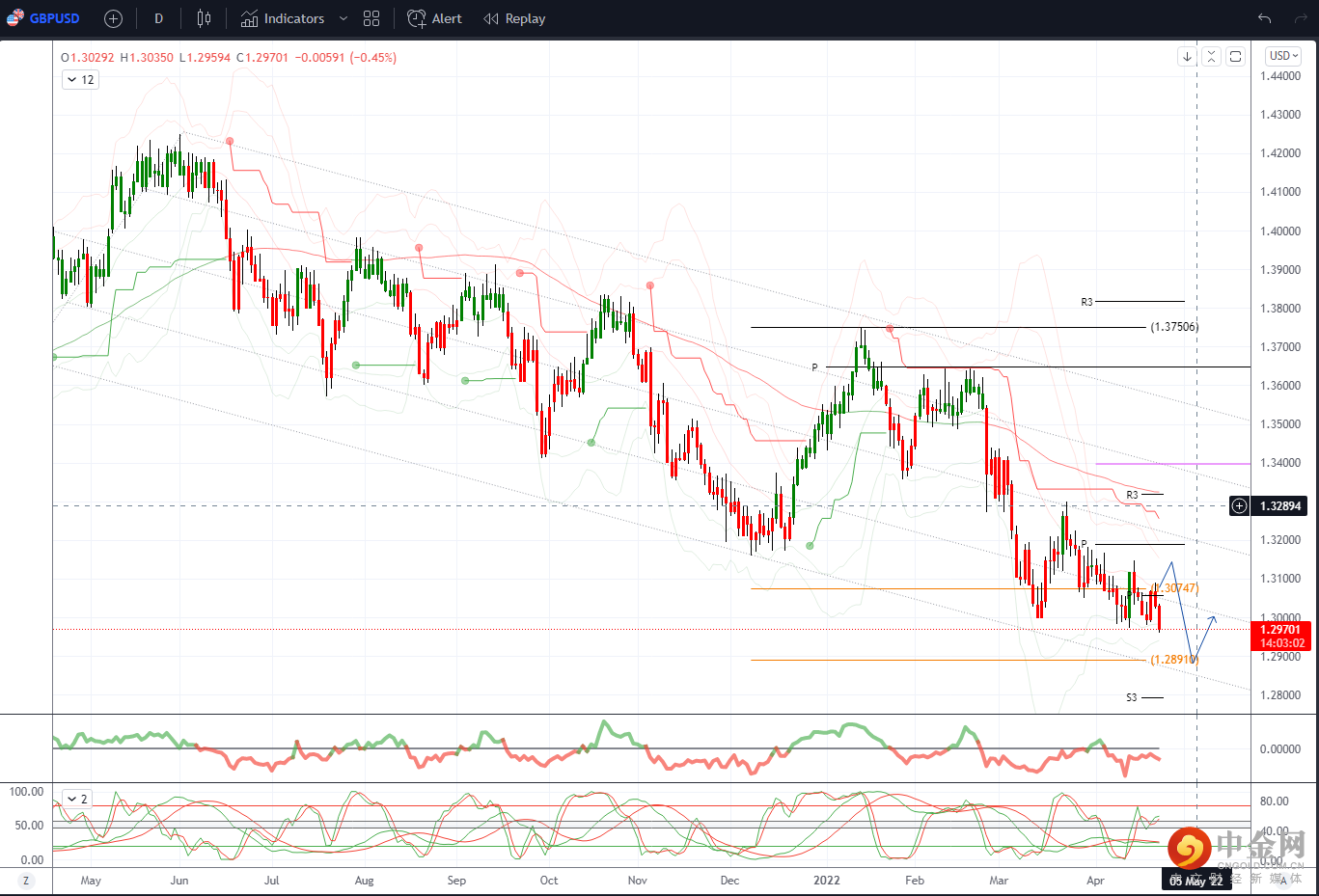 周三低点1.2995和上周1.2973 2022底部第一支撑