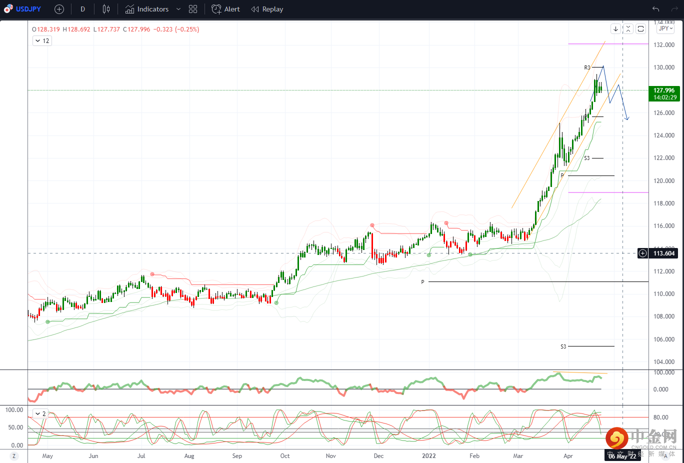 1.3167-1.3174为主要阻力,4月高点,3-4月跌幅61.8%