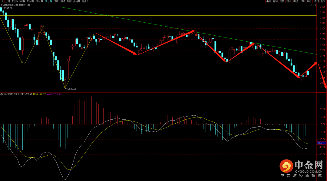 大盘在低开后出现五分钟底背驰结构出现反抽,注意六十分钟的反抽力度,如果无法突破3111就有可能出现三卖结构,届时将大概率出现再次的回落走势。注意把控下周二的短期变盘点,后续行情需要重点关注日k线是否出现底分型,在没有出现之前大概率无法出现连续反弹结构。