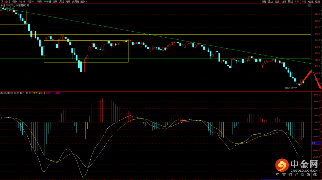 中证500短期重点关注日线macd的量柱,在没有出现再次的量柱缩小之前谨慎操作,由于整体下跌较为快速,后续很难快速直接回升,需要等待月线出现明显的止跌k线方能进行中长线布局。