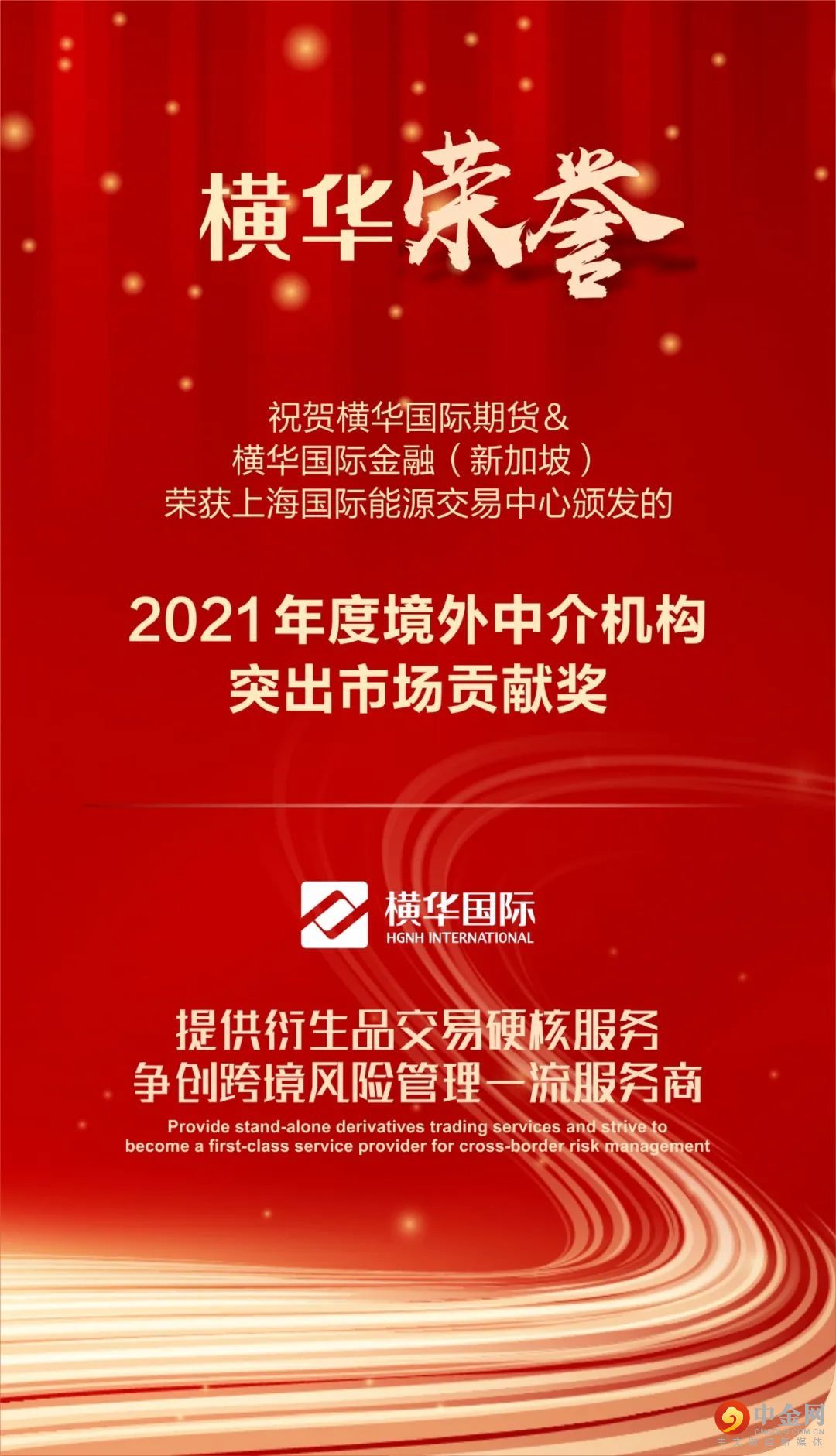 根据境外特殊经纪参与者、境外中介机构等境外经纪机构在客户开发、市场参与、业务服务等方面的情况,横华国际期货有限公司(以下简称横华国际期货)及横华国际金融(新加坡)有限公司(以下简称横华国际金融(新加坡))获得了上海国际能源交易中心颁发的“2021年度境外中介机构突出市场贡献奖”。2021 年,全球经济在新冠疫情笼罩下逐步复苏,原油需求强劲反弹带动油价大幅上涨。上海原油期货(品种代码:SC)价格与境外油价高度联动,并有效反映区域市场供需特点。成交规模稳步提升,机构客户参与度和境外客户参与度大幅提高,与境外市场联动发展更加紧密。此外,上海国际能源交易中心于 2021 年 6 月 21 日上市了原油期权,实现了中国能源衍生品多层次市场联动发展。