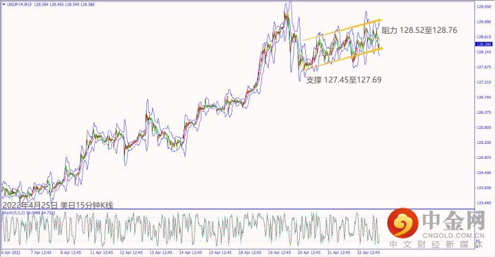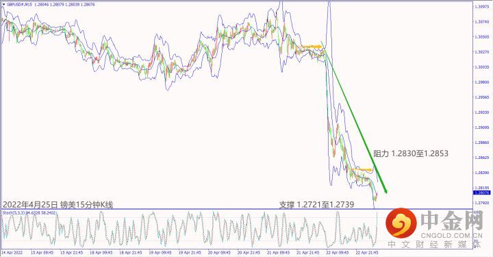 昨天(24日)日本财务省官员称美日在会议上协调汇市干预措施,一旦遏制日元进一步下跌,美日若因此跌破5日均线128.37,建议可短空操作。预期周末美国军援乌克兰可能扩大战事行动,欧美冲不过5日均线1.0807,建议可偏空操作。预期今天(25日)英国公布经济数据不佳,镑美冲不过小时布林带上轨线1.2838,建议可偏空操作。