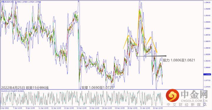今天(25日)清晨法国总统马克龙宣布连任,早上欧美冲高后回落。预期今天德国和英国公布经济数据不佳,可能造成欧美和镑美下跌。关注美国提供军事武器给乌克兰是否惹怒俄罗斯,一旦扩大炮轰乌克兰,可能造成欧美和镑美扩大下跌。