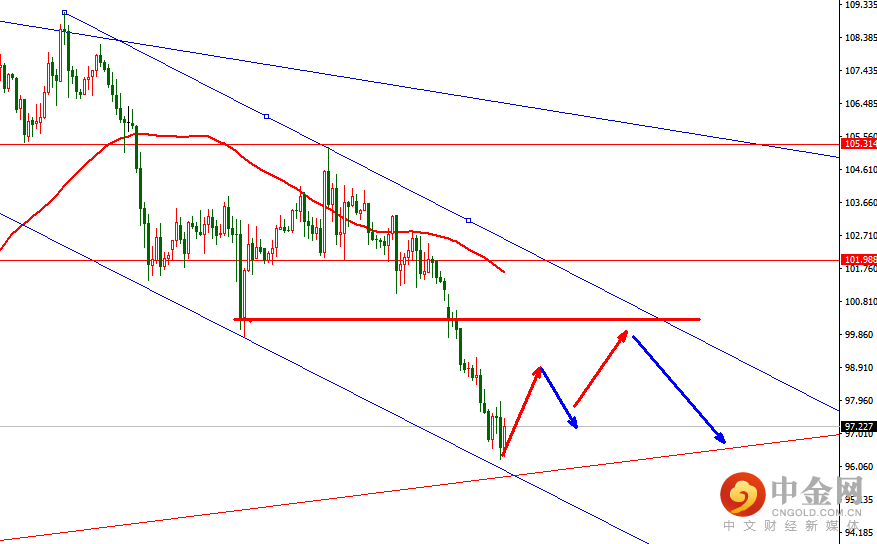 原油按照我们周末给出的预期跌破99.7看到96附近,下午提示96.3-4进场多单,上方阻力位置99.2-3一线,如有多单持有到位置即可。如行情在99.2-3一线受阻可以考虑空进场,下方支撑在96.3,跌破直接看到93.65一线。