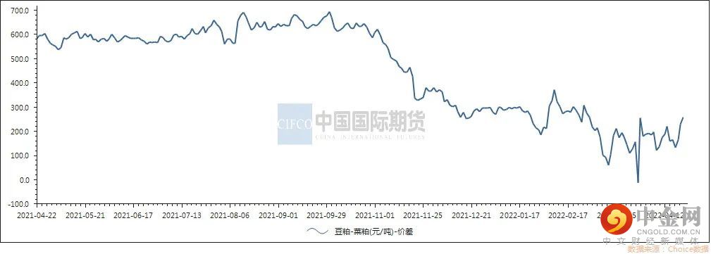 6.预计短期豆菜粕价差继续扩大空间有限。金俄乌冲突持续继续扰动大宗商品市场。南美大豆减产已成定局,全球供应下滑;美豆出口需求良好,库存下降,短期美豆价格震荡偏强,等待春播的进一步指引。国内豆粕需求不振,但价格主要由成本端主导,短期跟随美豆震荡偏强。去年加拿大油菜籽大幅减产,加之乌克兰菜籽供应中断,预计10月份前全球菜籽供应仍然紧张;近期国内菜籽和菜粕进口处于低位,菜粕供应偏紧;随着气温的升高,南方水产养殖陆续启动,菜粕需求逐渐增加,支撑菜粕价格。预计短期豆菜粕价差继续扩大空间有限。(国家粮油信息中心)