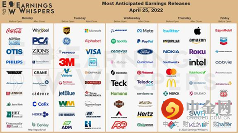 图一:本周 (4月25日至29日),一众焦点美企,将公布2022年首季/最新财季业绩