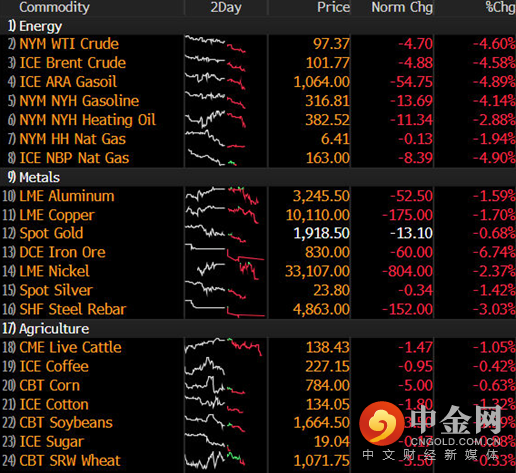 图二:国际能源、金属、农产品市场,今日(4月25日) 全面见红