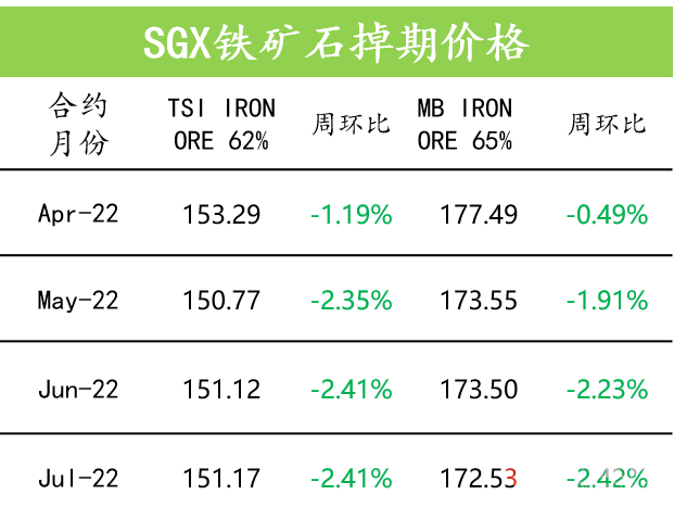 2、目前来看,矿山发运有所增加,但疫情反复对国内原料运输仍有持续影响,这也导致部分钢厂被迫闷炉,全国高炉开工率周环比微降。另一方面,下游钢材也面临旺季不旺,需求疲软的现状,钢厂利润也在不断收缩。整体来看,港口现货库存虽连续下降,五一长假前也有补库预期,但市场受疫情及确保今年的粗钢产量实现同比下降的消息影响,整体情绪较为悲观。此外,市场对系统性风险的担忧冲击了之前对政策的乐观预期,矿价弱势格局短期或难以扭转。