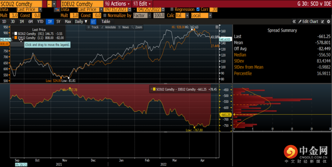 DCE大商所铁矿09月/22年-SGX新交所铁矿09月/22年
