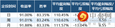 经过历史数据回测后可以发现同样的结论,无论选择日定投、周定投还是月定投,长期收益率、胜率、平均盈利幅度/平均亏损幅度等结果也没有表现出太大的区别。