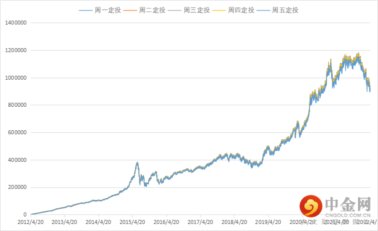 图表2:周一至周五定投回测情况对比