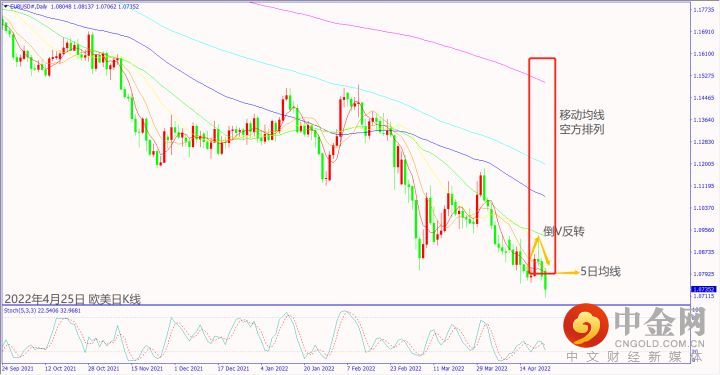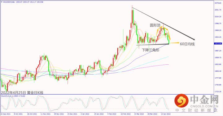 上周末美国将提供乌克兰武器进行运输,如果本周一(25日)俄罗斯扩大炮轰乌克兰,可能造成欧美和镑美再创波段新低。预期本周二(26日)美国公布经济数据大都不佳,可能造成美元指数回调。关注本周四(28日)日本央行利率决议如果偏向鹰派,可能造成美日转跌。同日如果欧元区公布经济数据大都不佳,可能造成欧美和镑美再度下跌。预期本周四晚间美国公布GDP和失业数据不佳,可能造成美元指数再度回调。本周五(29日)如果欧元区公布第一季度GDP数据利好,有望带动欧美和镑美反弹。