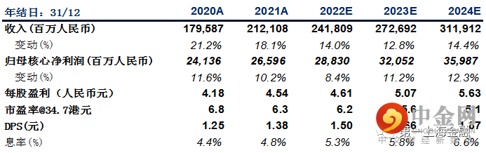 2021年,公司实现合同销售额约人民币3158亿元,同比增长10.8%,权益销售额同比增长16%。在2021年下半年行业风险加剧的情况下仍然完成了全年销售目标。合约销售面积1760万方,销售均价17988元/平方米。一二线城市合约销售占比提升1个ppt至86%。全年每股共派发股息1.38元,派息率37%。