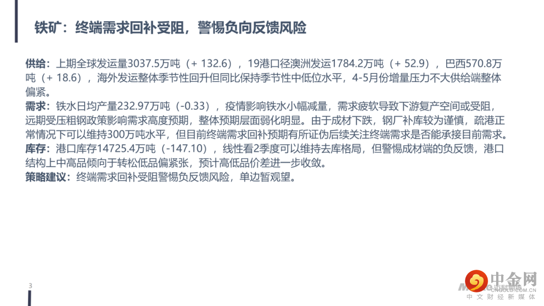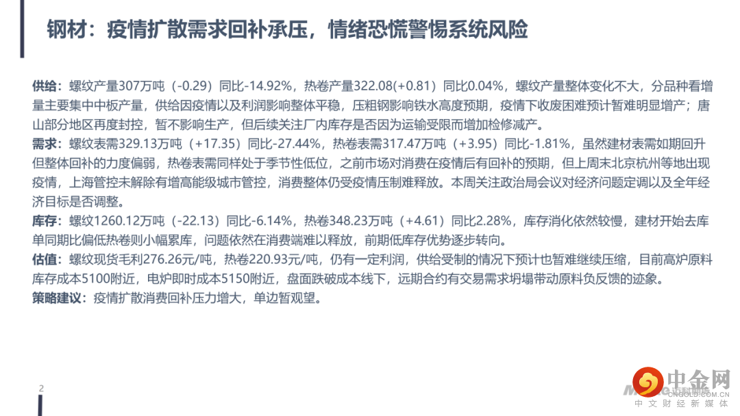 迈科黑色金属周报 | 疫情扩散需求回补承压,情绪恐慌警惕系统风险丨2022.04.25