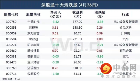 三大股指早盘探底回升,创业板指一度涨超2%。午后券商板块急转直下,多头再度溃散,沪深三大股指续创阶段新低,宁德时代尾盘被砸并收于日内最低点。大市成交0.84万亿元,上日为0.9万亿。北向资金全天成交1132.4亿元,基本与上日持平。日内逆势净买入15.43亿元,早盘一度净卖出近18亿元,其中沪股通净卖出2.78亿元,深股通净买入18.21亿元。白酒股集体获加仓,贵州茅台、五粮液分别获净买入4.11亿元、3.61亿元。此外,东方财富净买入3.01亿元,比亚迪、兴业银行净买入逾2亿元。净卖出方面,招商银行继续遭出货,日内净卖出6.65亿元,连续6日净卖出,累计净卖出57.23亿元;恒瑞医药净卖出6.01亿元,净卖出额创3个月新高,宁德时代净卖出3.42亿元。