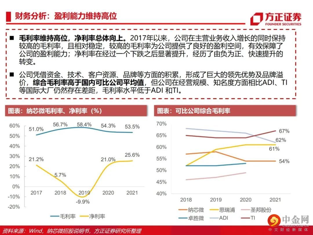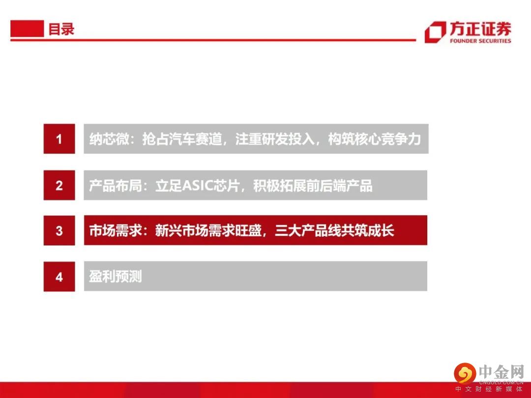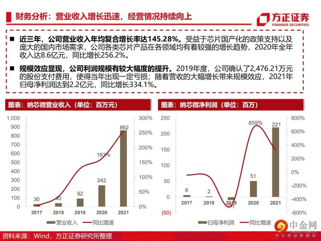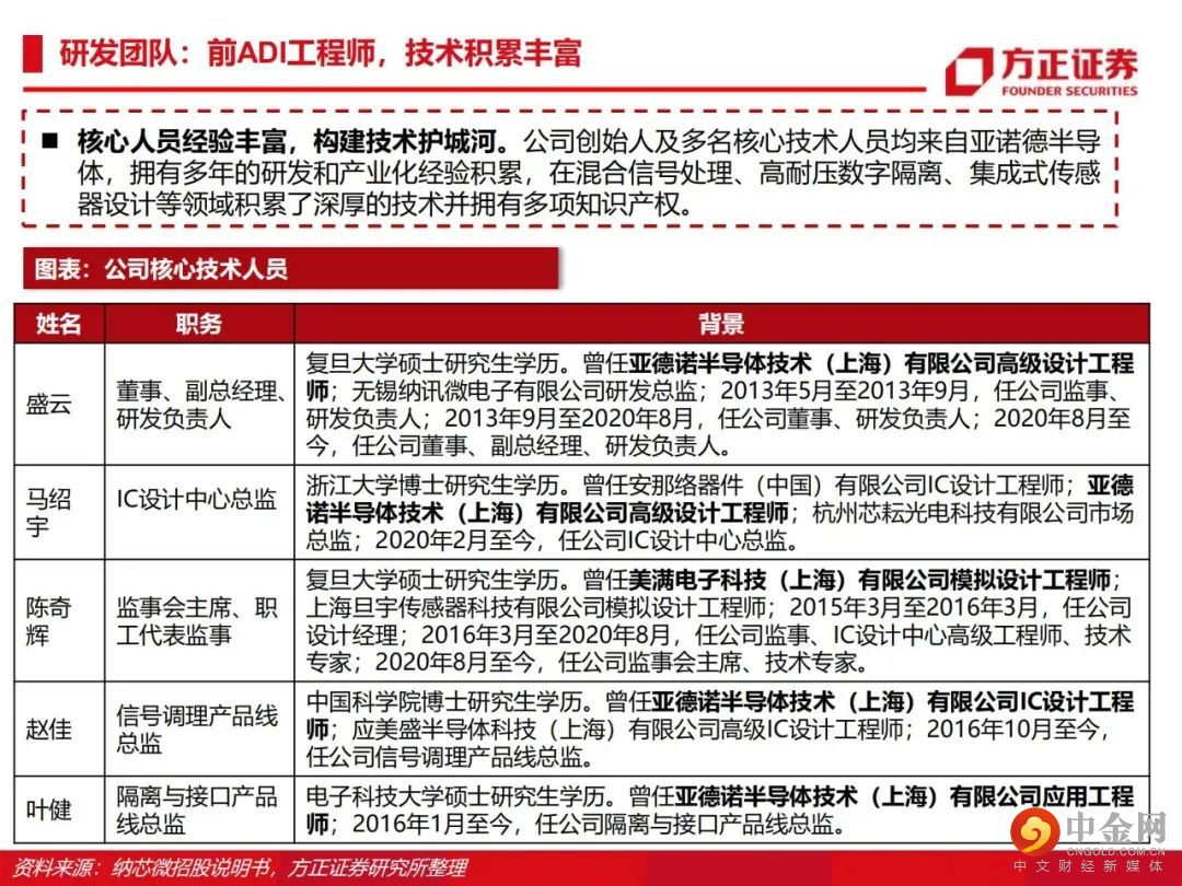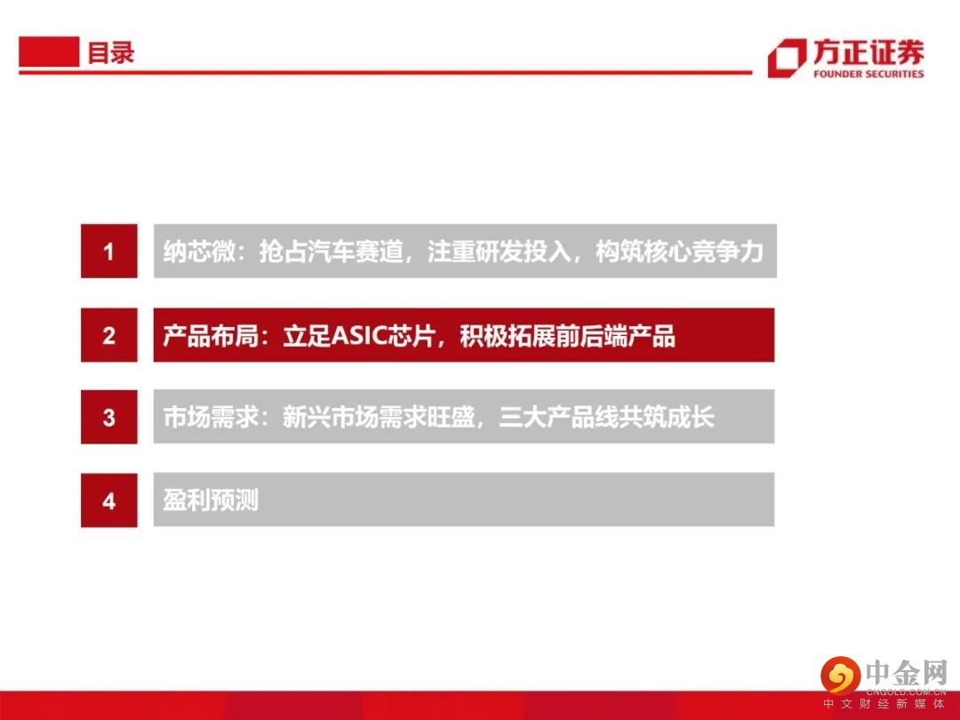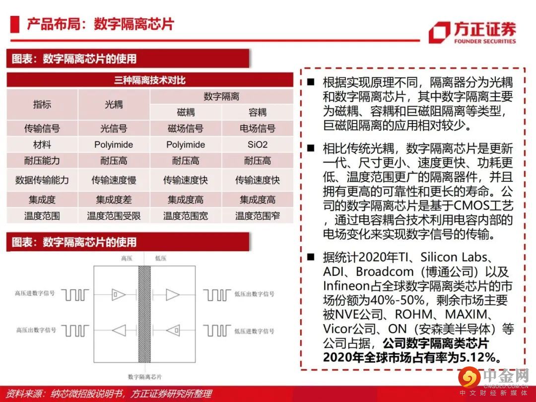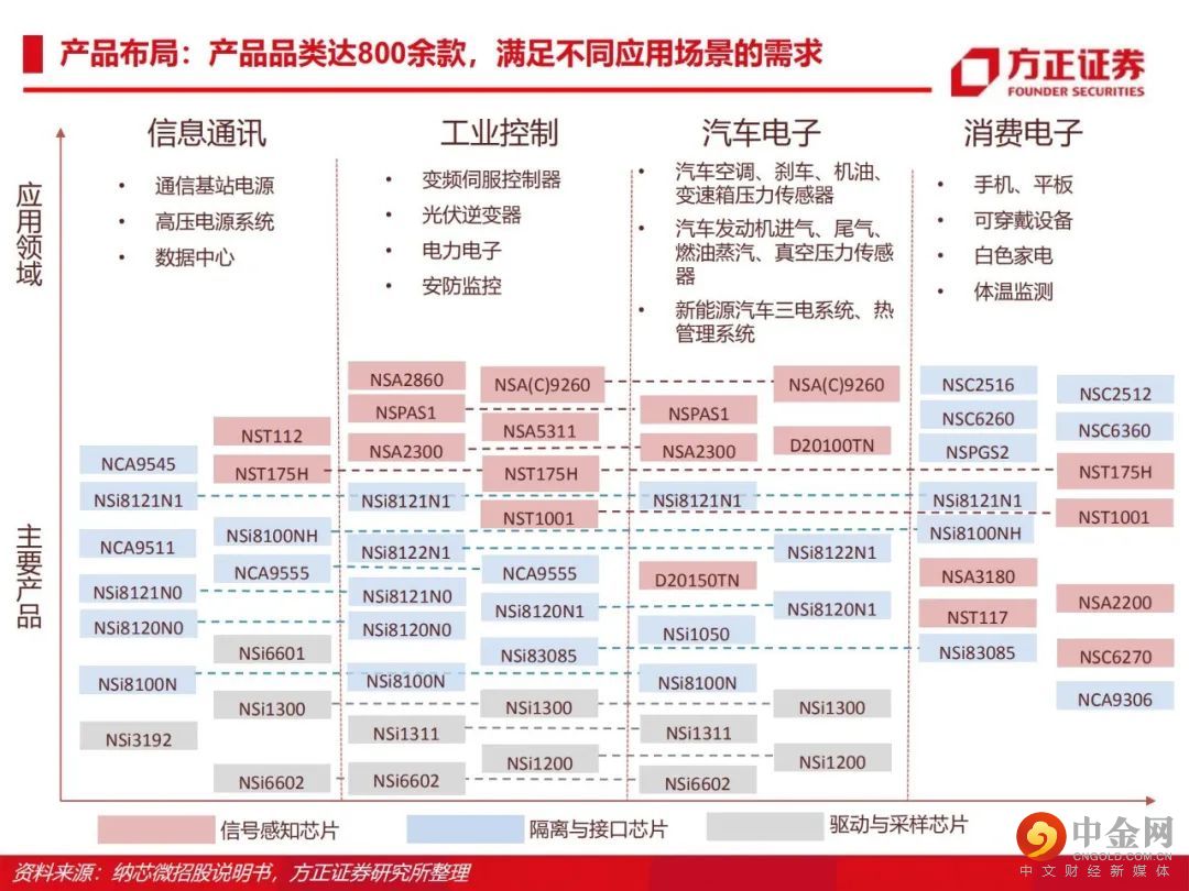 从感知到驱动,纵向布局前后端产品。公司由传感器信号调理ASIC芯片出发,向前后端拓展并推出了集成式传感器芯片、隔离与接口芯片以及驱动与采样芯片,形成了信号感知、系统互联与功率驱动的产品布局。传感、隔离、驱动三大产品线齐发力,积极布局车规级应用。公司满足AEC-Q100标准的车规级传感芯片、隔离驱动与隔离采样芯片已成功进入比亚迪、五菱汽车、长城汽车、一汽集团、宁德时代等国内主流终端厂商的新能源汽车供应体系并实现批量装车。泛工业领域需求旺盛,迎来新的下游应用领域增长点。受益于国产化替代机遇以及信息通讯领域需求的大幅增长,公司的隔离与接口芯片等产品陆续向信息通讯行业一线客户实现批量供货,迎来了业务快速上升期。此外,电力储能、光伏、功率电机驱动等细分领域均同样呈现了较大幅度的增长。盈利预测:我们预计公司 2022/2023/2024 年收入分别为 15.8/22.8/28.3亿元,归母净利润分别为 4.4/7.1/8.8亿元,首次覆盖给予“推荐”评级。风险提示:晶圆产能紧张;下游需求不及预期;盈利预测的不可实现性和估值方法的不适用性。