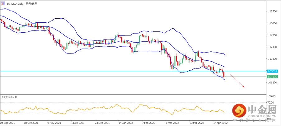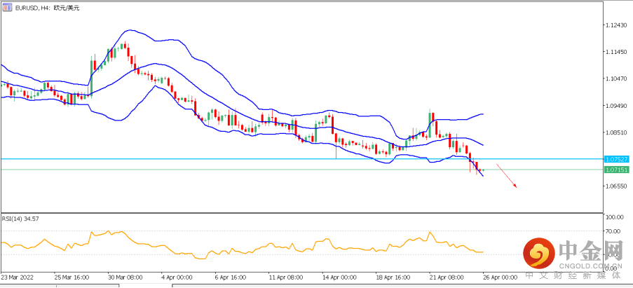 3.欧美 EURUSD:美元指数连创逾两年新高,攀升至101.70附近,促使欧美走势下破3月初的前低1.0800支撑,目前价格将进一步走低,后市有望逐步向1.0600靠近。