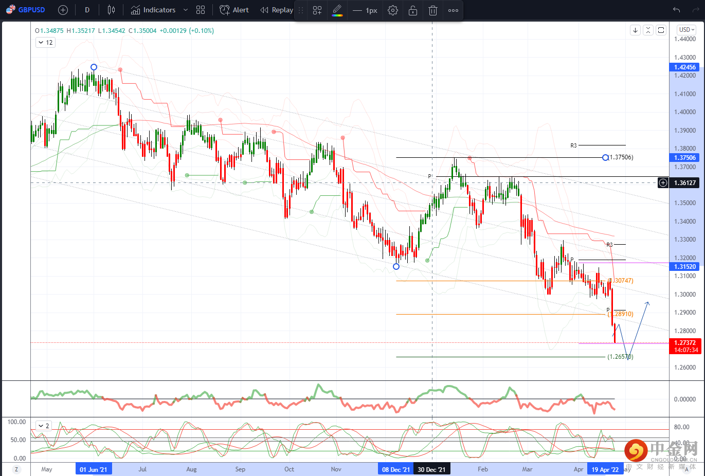 跌破关键1.2832 50% 斐波那契1.1413-1.4250意义重大