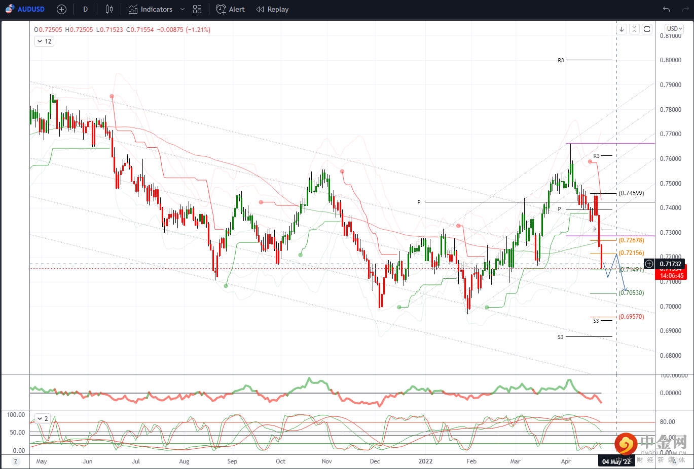 澳元/美元关注 0.7165,3 月 15 日的低点,更强支撑位在 0.7100,近期空头 0.70