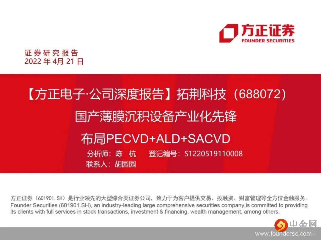 本文来自方正证券研究所于2022年4月22日发布的报告《拓荆科技(688072):国产薄膜沉积设备产业化先锋,布局PECVD+ALD+SACVD》,欲了解具体内容,请阅读报告原文。
