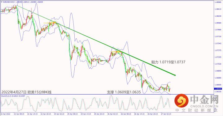 今天(27日)澳大利亚公布CPI数据高于市场预期,带动欧美一度上涨约45个点。预期今天德国和英国公布经济数据不佳,可能造成欧美和镑美再创波段新低。预期周四(28日)清晨欧洲央行行长拉加德对市场乐观今年7月加息表示有望,可能带动欧美出现大反弹。