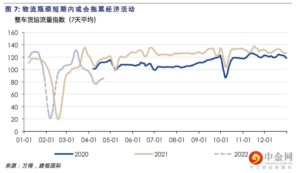 如我们三月底强调的,美元走强下,未来美元兑人民币汇率预计面临双向波动。美元近期预计继续偏强,央行预计将容忍汇率的下行弹性以避免汇率高估,并为疫情防控下可能出现的供应链受损以及经济放缓提供支持(图 7)。我们预计未来几个月,人民币兑美元汇率可能在 6.4-6.7 区间内波动。然而,发达市场强劲的资本支出和耐用品需求预计会继续支撑亚洲出口活动。叠加下半年美元可能走软,届时人民币汇率有望企稳。我们将年底人民币兑美元的预测由早前的6.3调至 6.4。