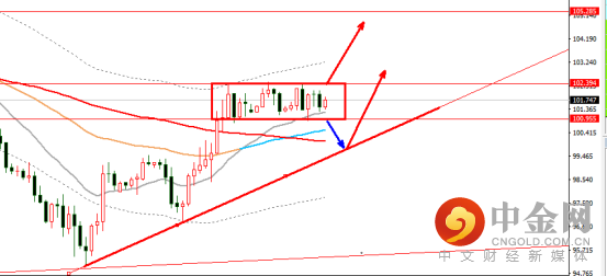 原油日内围绕102.4-100.9区间震荡,就看行情往哪个方向突破后做跟随了。下方还是看趋势线和80日均线100支撑。如向上突破,上方阻力104.5.