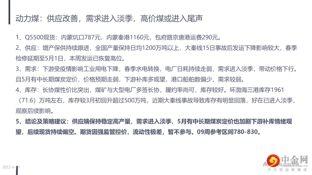 迈科动力煤周报-淡季弱需求水电转换,政策定价引导煤价回归理性 | 2022.04.25