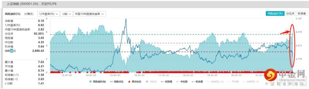 如上图,上证指数十年点位变化,相对此前的3000点,当前市场风险溢价性价比相对最高。