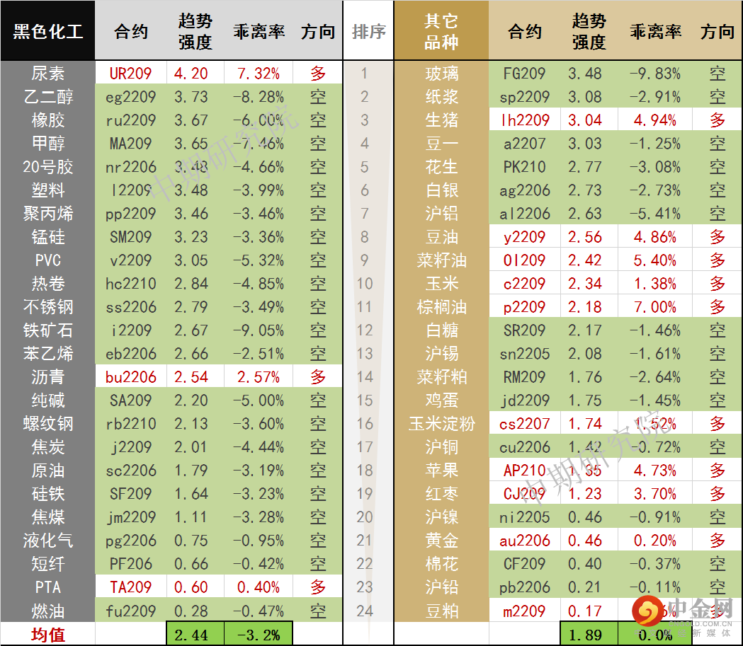 中期商品趋势榜 | 尿素多头趋势增强(0426)