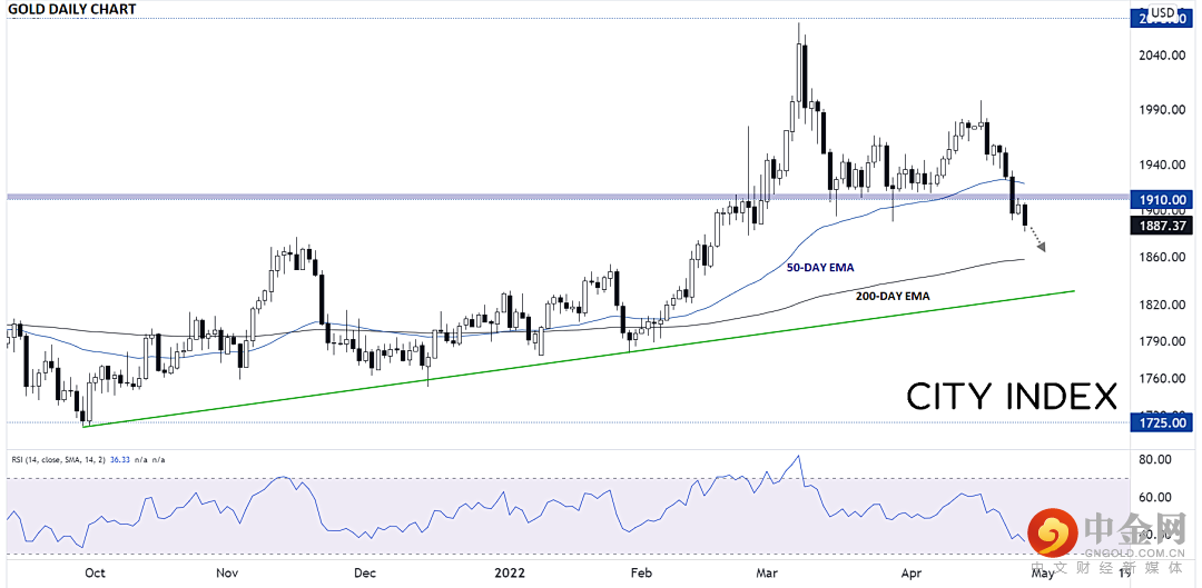 相比上周2000附近的最高点,黄金目前跌逾5%,且正在考验两个多月的最低点。